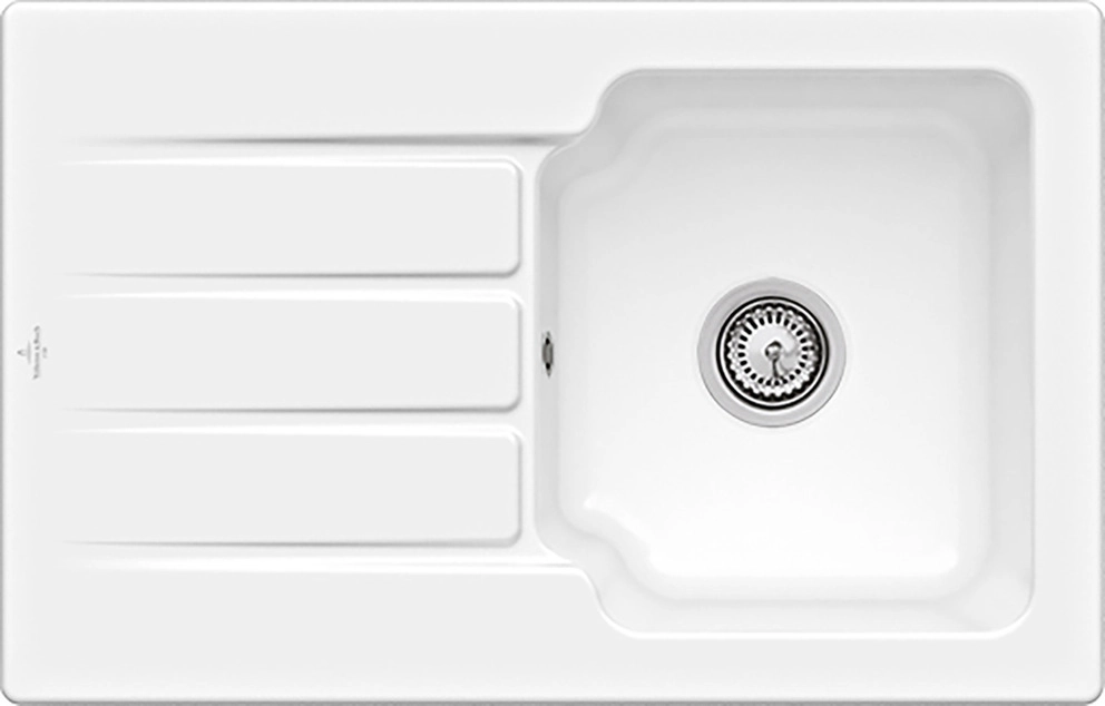 inklusive Ablaufgarnitur mit Handbetätigung, aus Keramik, 800 x 510 mm, Weiß Alpin, CeramicPlus