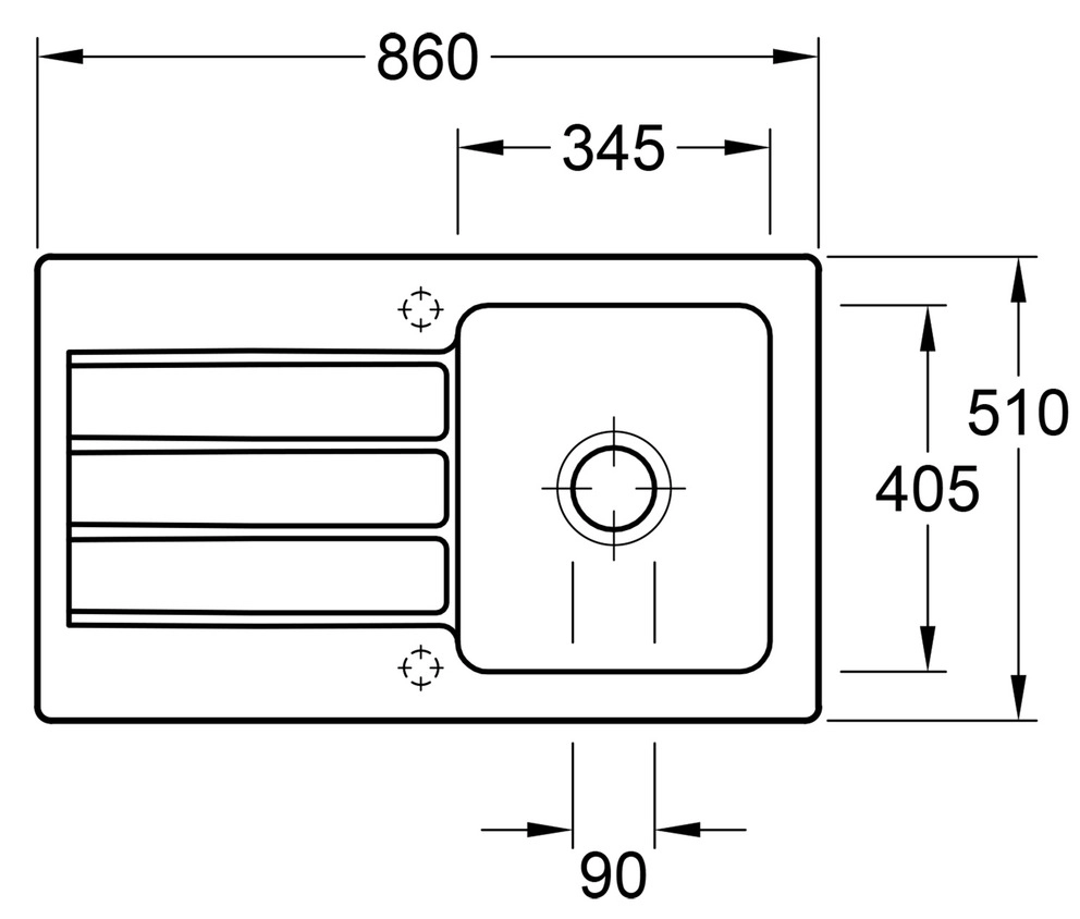 inklusive Ablaufgarnitur mit Excenterbetätigung, aus Keramik, 860 x 510 mm, Chromite, CeramicPlus