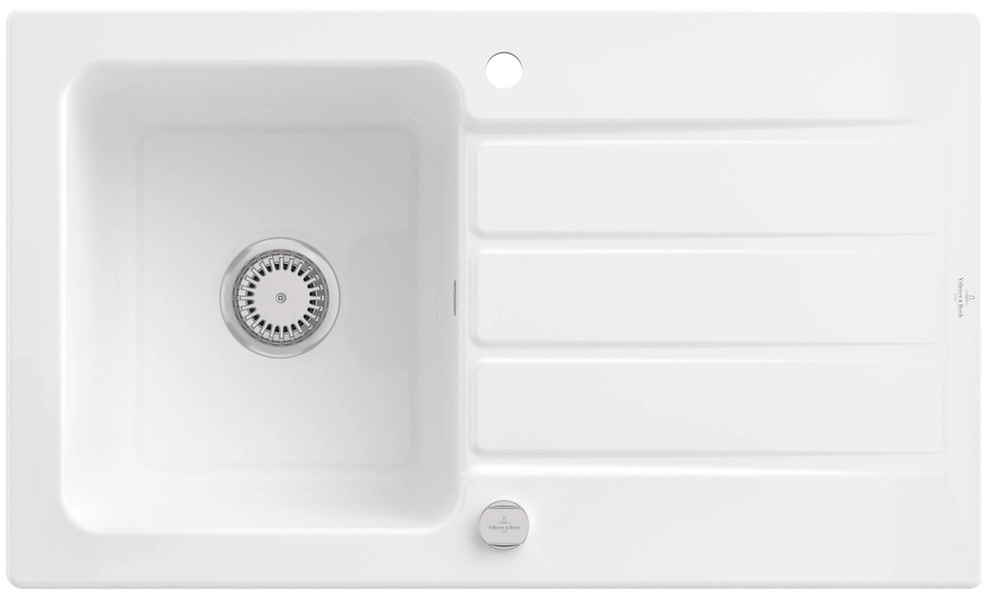 inklusive Ablaufgarnitur mit Excenterbetätigung, aus Keramik, 860 x 510 mm, Weiß Aloin, CeramicPlus