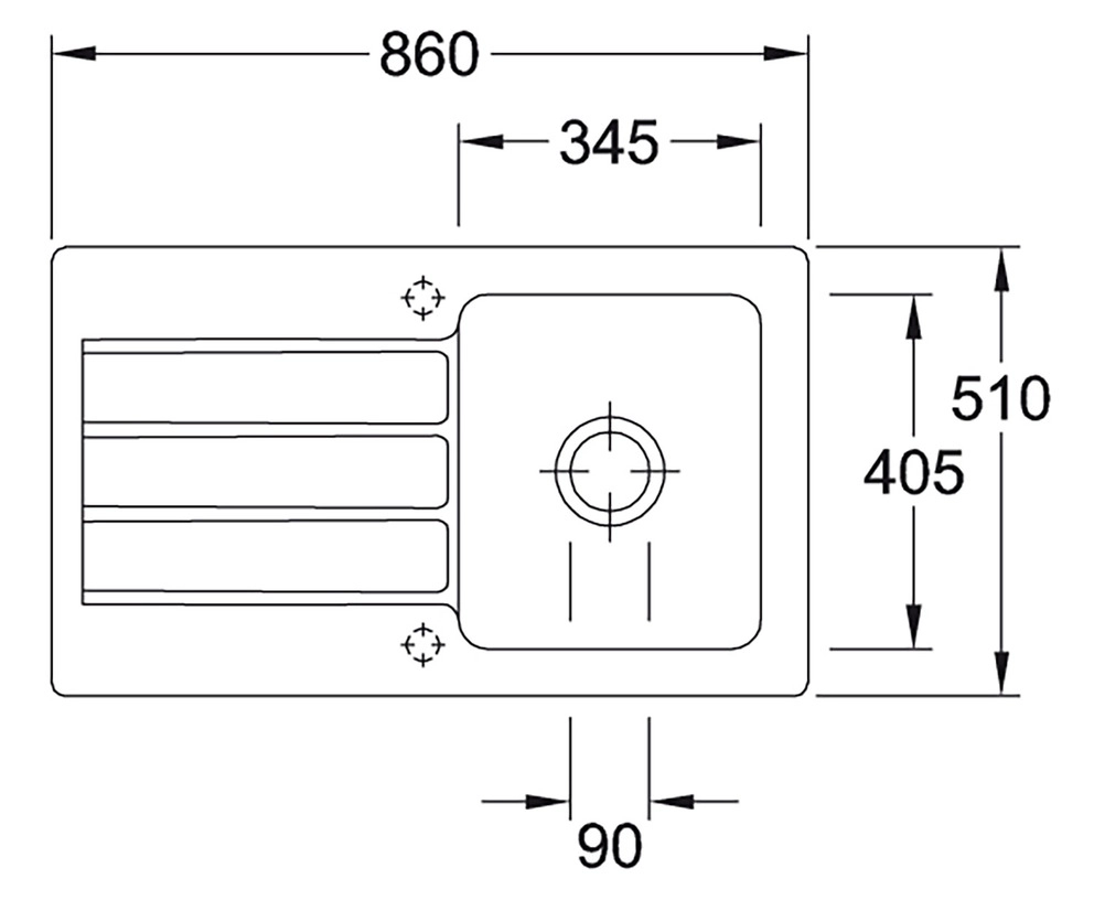 Spüle in CeramicPlus-Qualität inkl. Ablaufgarnitur mit Handbetätigung