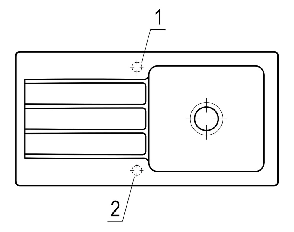 Bitte geben Sie bei der Bestellung die Nummer des Hahnlochs an (siehe Zeichnung), welches im Werk durchgebohrt werden soll. Artikelnummer Hahnloch = 69999999.