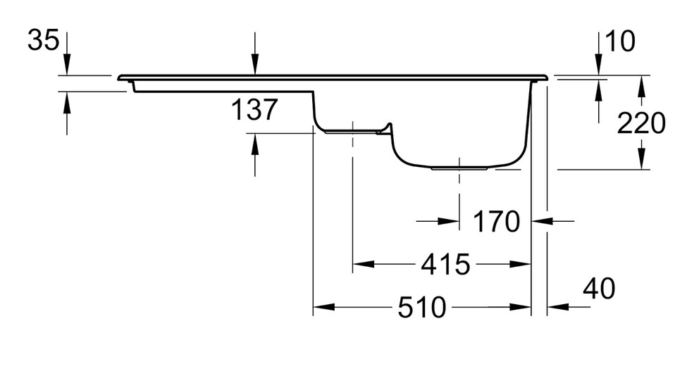 Ausschnittmaß Arbeitsplatte: 97 x 48 cm