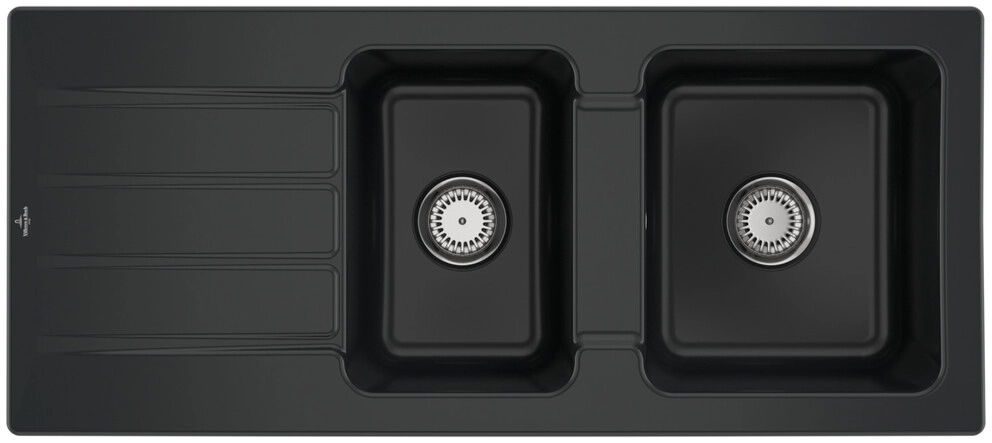 inklusive Ablaufgarnitur mit Handbetätigung, aus Keramik, 1160 x 510 mm, Pure Black, CeramicPlus