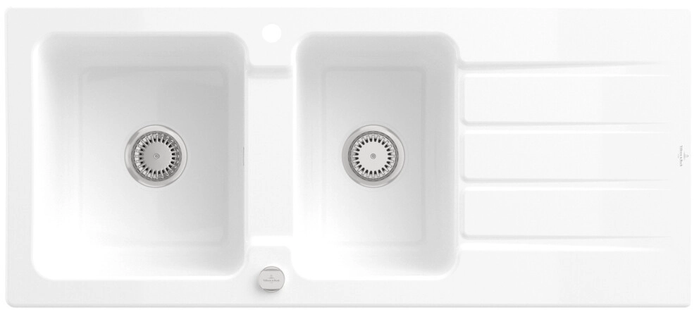 inklusive Ablaufgarnitur mit Excenterbetätigung, aus Keramik, 1160 x 510 mm, Weiß Alpin, CeramicPlus