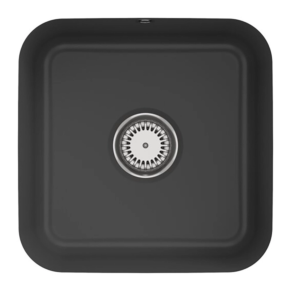 inklusive Ablaufgarnitur mit Handbetätigung, aus Keramik, 445 x 445 mm, Graphit, CeramicPlus