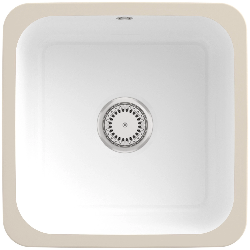 inklusive Ablaufgarnitur mit Handbetätigung, aus Keramik, 445 x 445 mm, Weiß Alpin, CeramicPlus