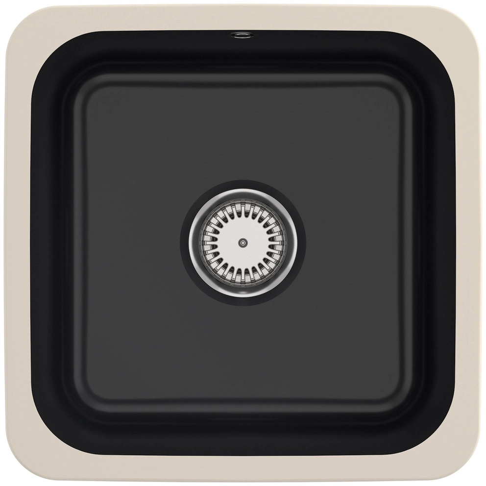 inklusive Ablaufgarnitur mit Handbetätigung, aus Keramik, 445 x 445 mm, Pure Black, CeramicPlus