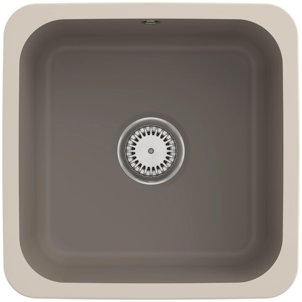 inklusive Ablaufgarnitur mit Handbetätigung, aus Keramik, 445 x 445 mm, Timber, CeramicPlus