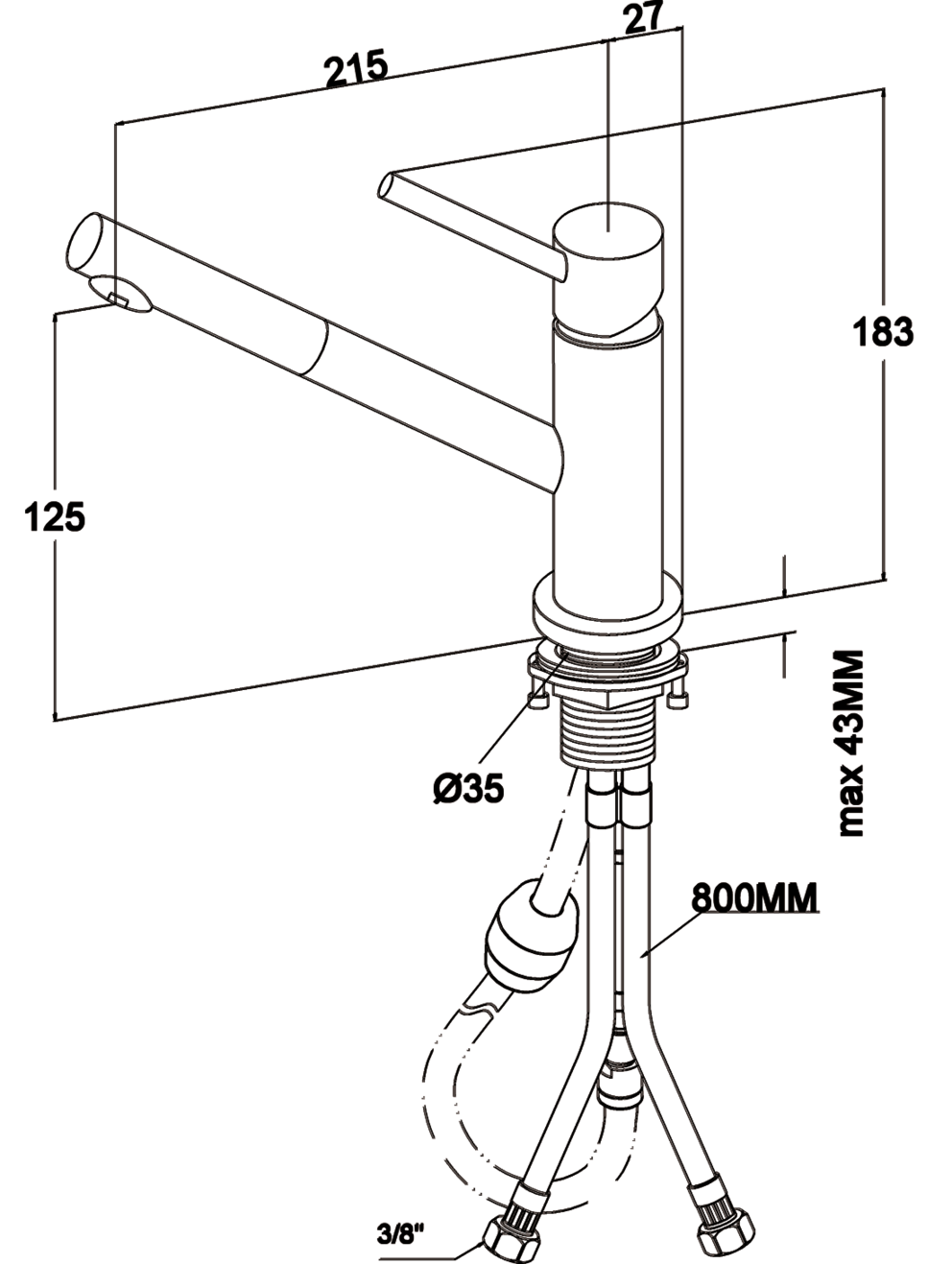 • Sockelhöhe bei ausgezogener Armatur: 35 mm