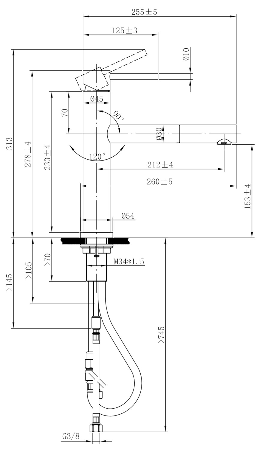 -Schwenkbereich: 120°