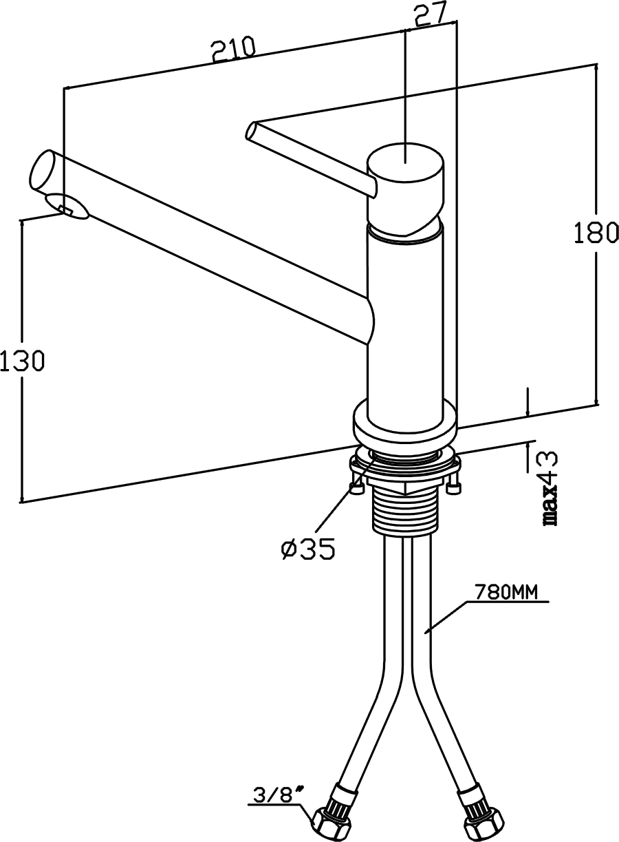• Sockelhöhe bei ausgezogener Armatur: 35 mm