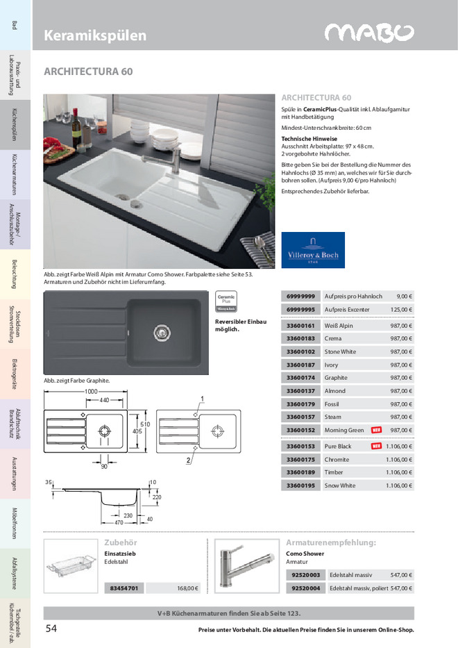 V&B Einsatzsieb, Edelstahl