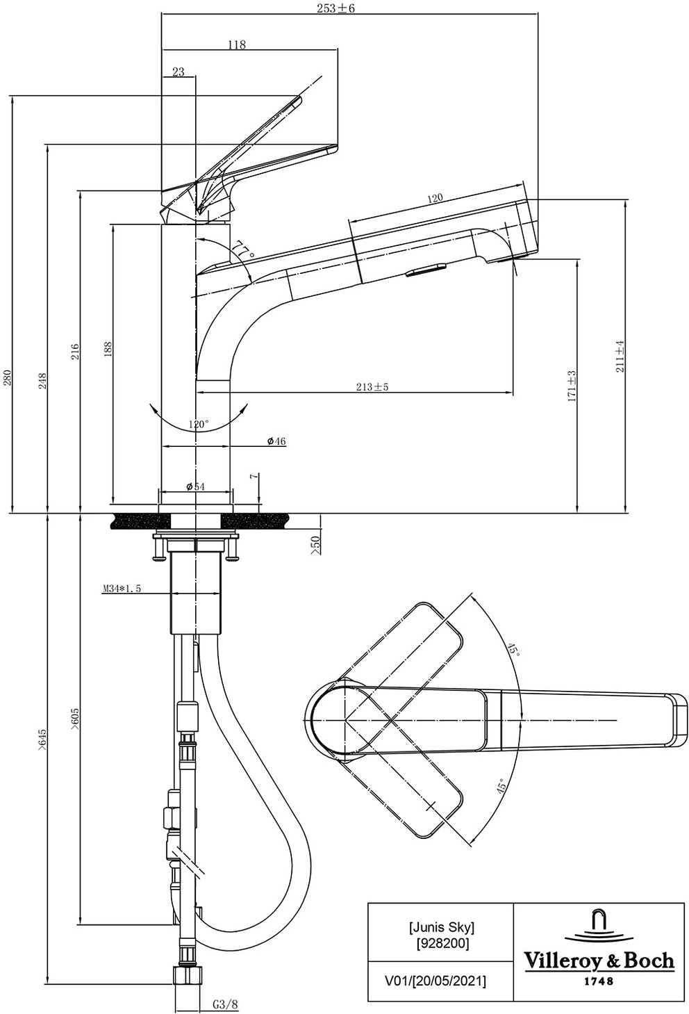 V&B Junis Sky Shower Küchenarmatur Edelstahl massiv Schlauchbrause