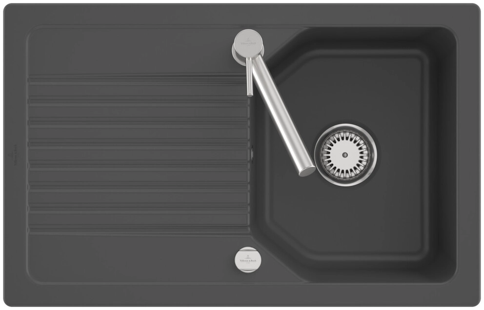 inklusive Ablaufgarnitur mit Excenterbetätigung, aus Keramik, 780 x 490 mm, Graphite, CeramicPlus