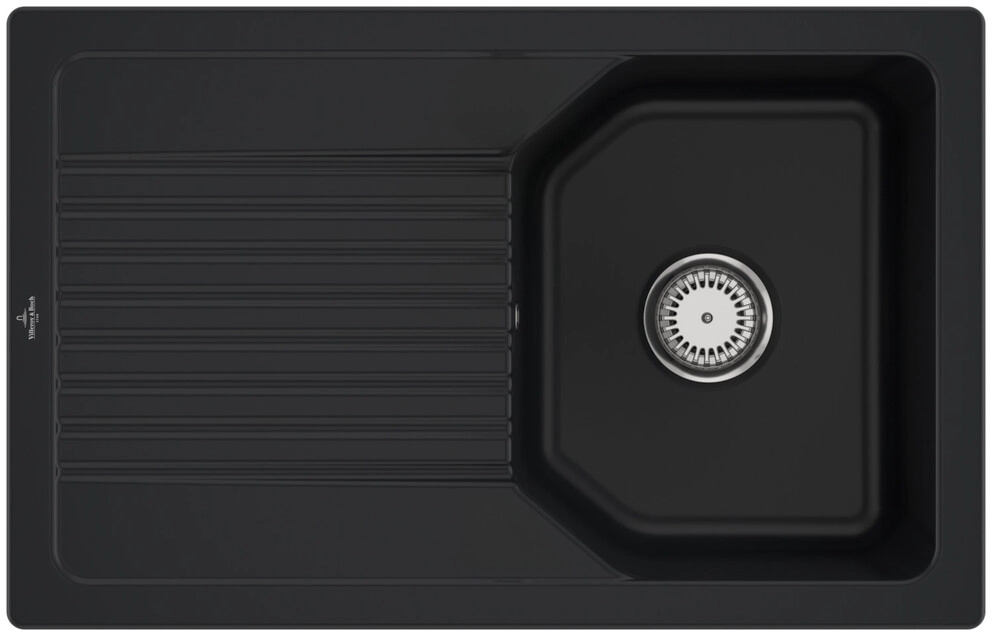 inklusive Ablaufgarnitur mit Handbetätigung, aus Keramik, 780 x 490 mm, Pure Black, CeramicPlus