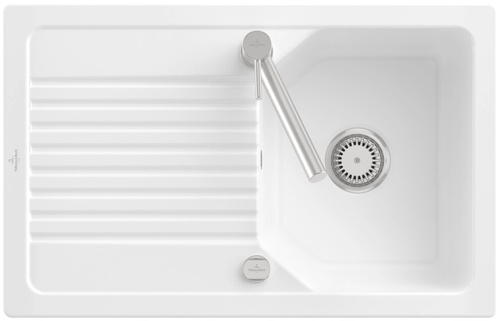 inklusive Ablaufgarnitur mit Excenterbetätigung, aus Keramik, 780 x 490 mm, Snow White, CeramicPlus