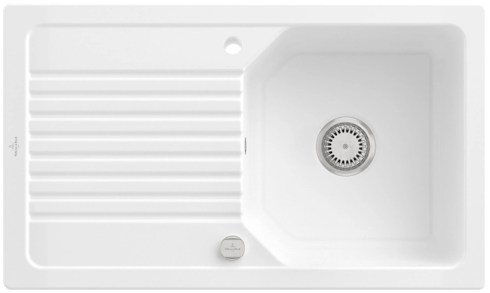 inklusive Ablaufgarnitur mit Excenterbetätigung, aus Keramik, 860 x 510 mm, Snow White, CeramicPlus