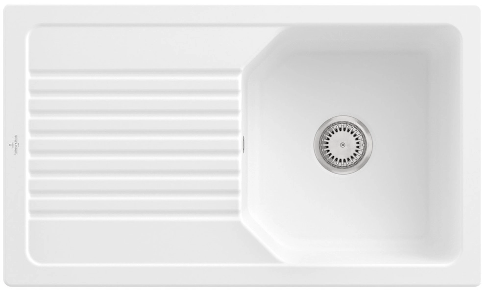 inklusive Ablaufgarnitur mit Handbetätigung, aus Keramik, 860 x 510 mm, Stone White, CeramicPlus