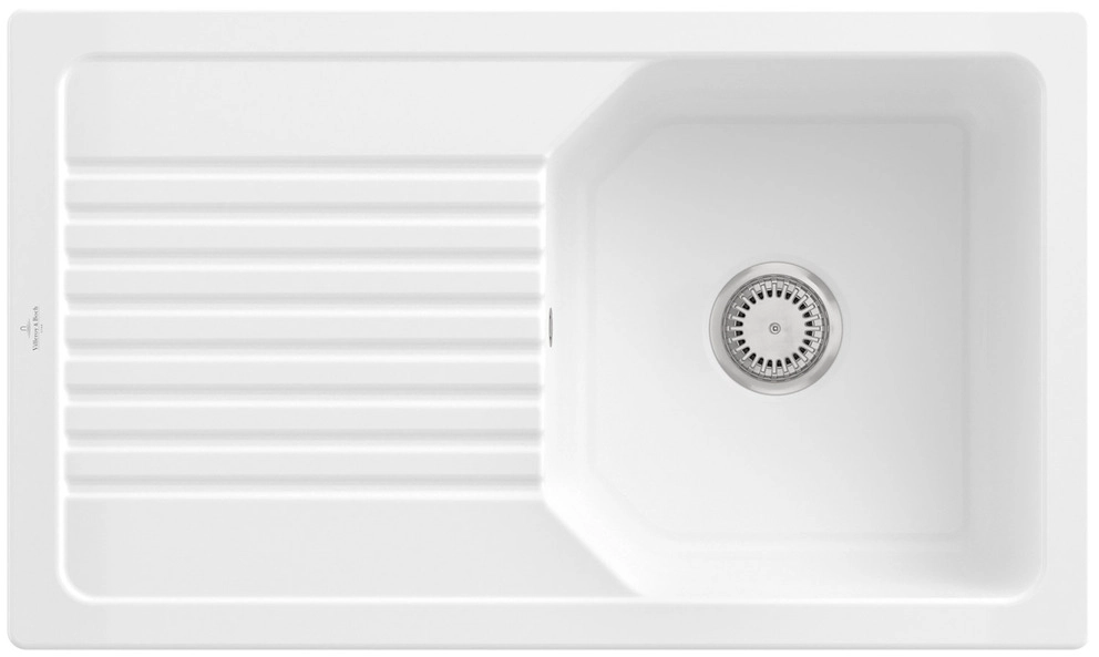 inklusive Ablaufgarnitur mit Handbetätigung, aus Keramik, 860 x 510 mm, Weiß Alpin, CeramicPlus