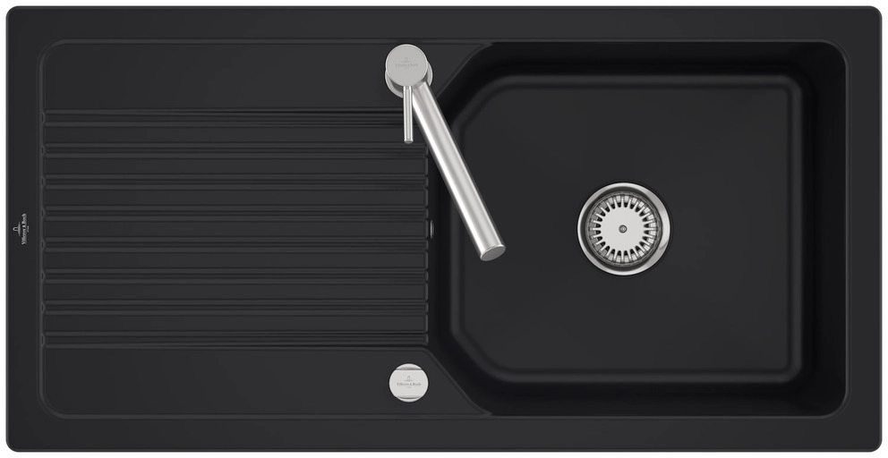 inklusive Ablaufgarnitur mit Excenterbetätigung, aus Keramik, 860 x 510 mm, Pure Black, CeramicPlus