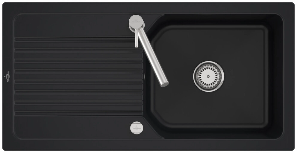 inklusive Ablaufgarnitur mit Excenterbetätigung, aus Keramik, 980 x 490 mm, Pure Black, CeramicPlus