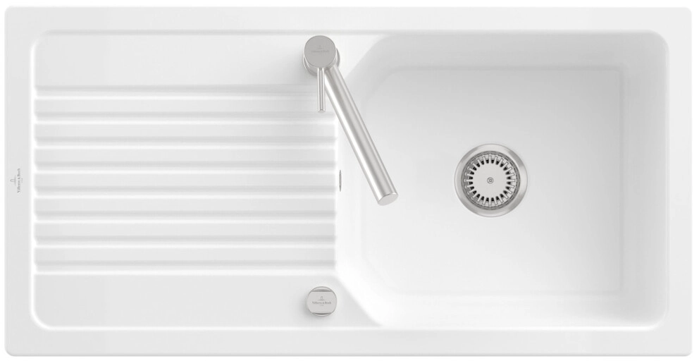 inklusive Ablaufgarnitur mit Excenterbetätigung, aus Keramik, 980 x 490 mm, Snow White, CeramicPlus