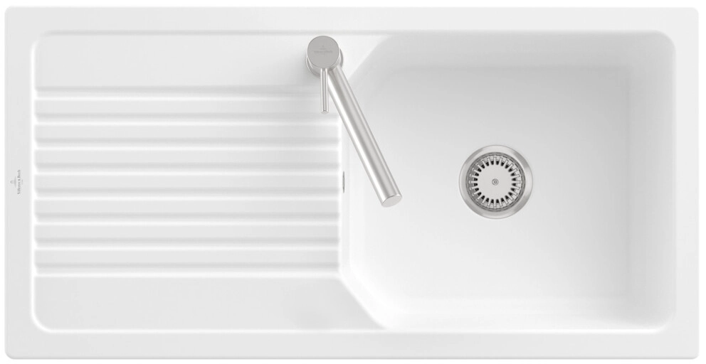 inklusive Ablaufgarnitur mit Handbetätigung, aus Keramik, 980 x 490 mm, Stone White, CeramicPlus