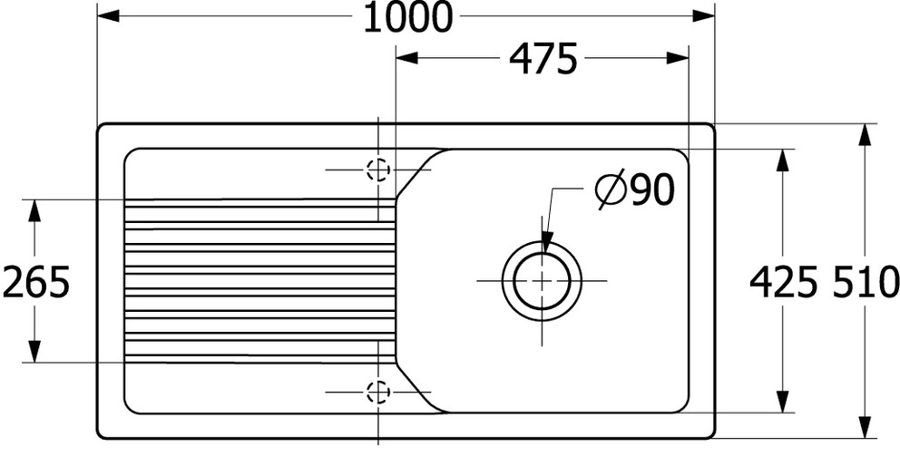 Aussparung der Arbeitsplatte: 97 x 48 cm