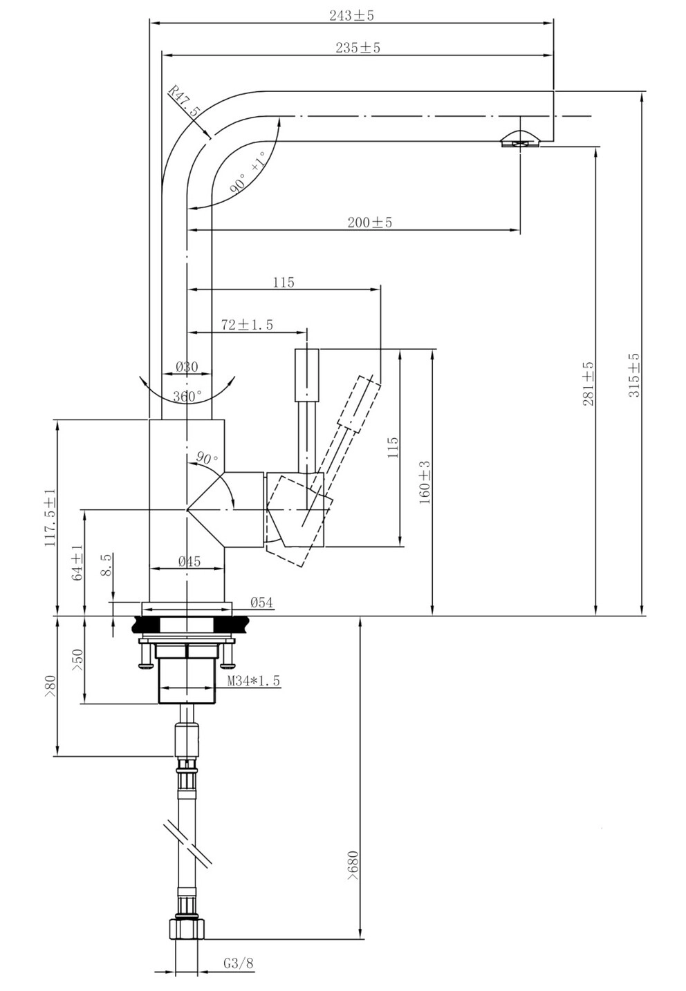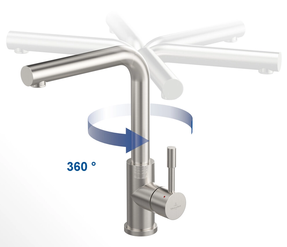 - Montage der Armatur direkt vor einer Wand möglich, da die Kalt- und Warmwasserregulierung