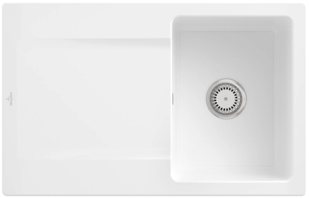 inklusive Ablaufgarnitur mit Handbetätigung, aus Keramik, 800 x 510 mm, Snow White, CeramicPlus