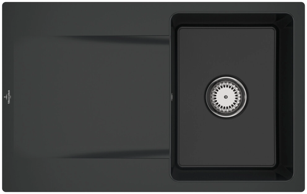 inklusive Ablaufgarnitur mit Handbetätigung, aus Keramik, 780 x 490 mm, Pure Black, CeramicPlus