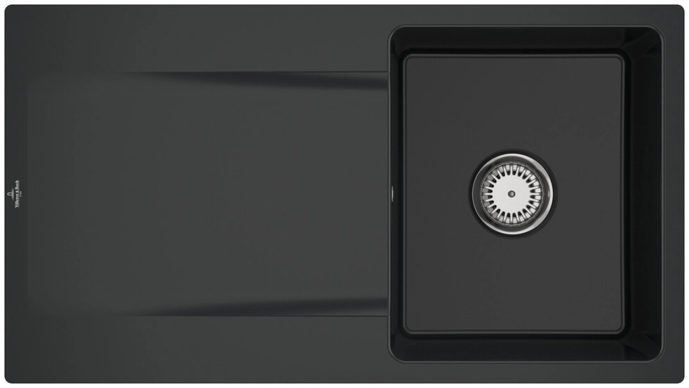 inklusive Ablaufgarnitur mit Handbetätigung, aus Keramik, 880 x 490 mm, Pure Black, CeramicPlus