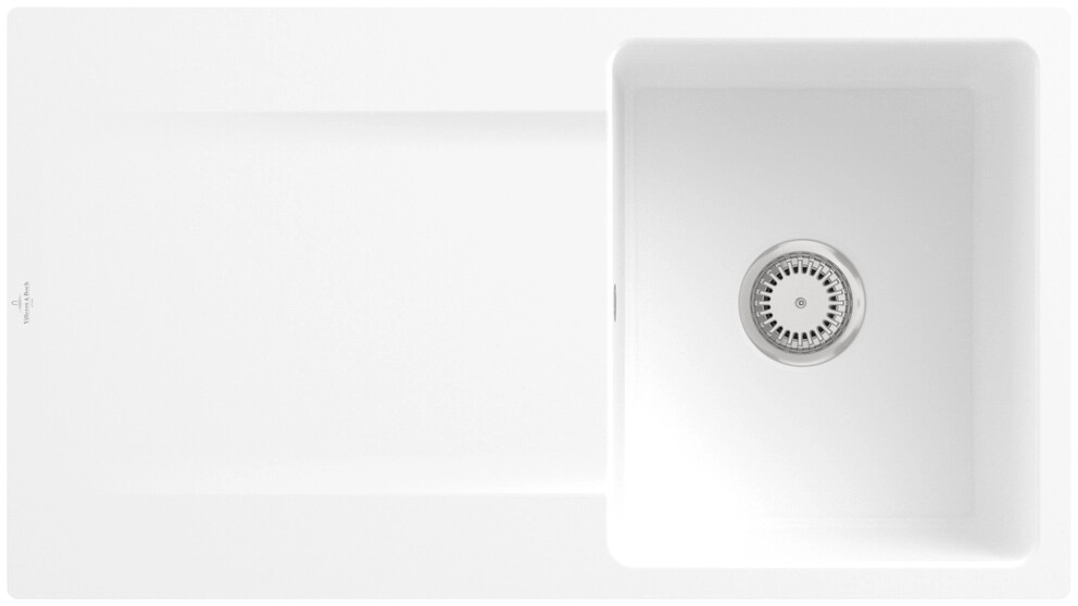 inklusive Ablaufgarnitur mit Handbetätigung, aus Keramik, 880 x 490 mm, Stone White, CeramicPlus