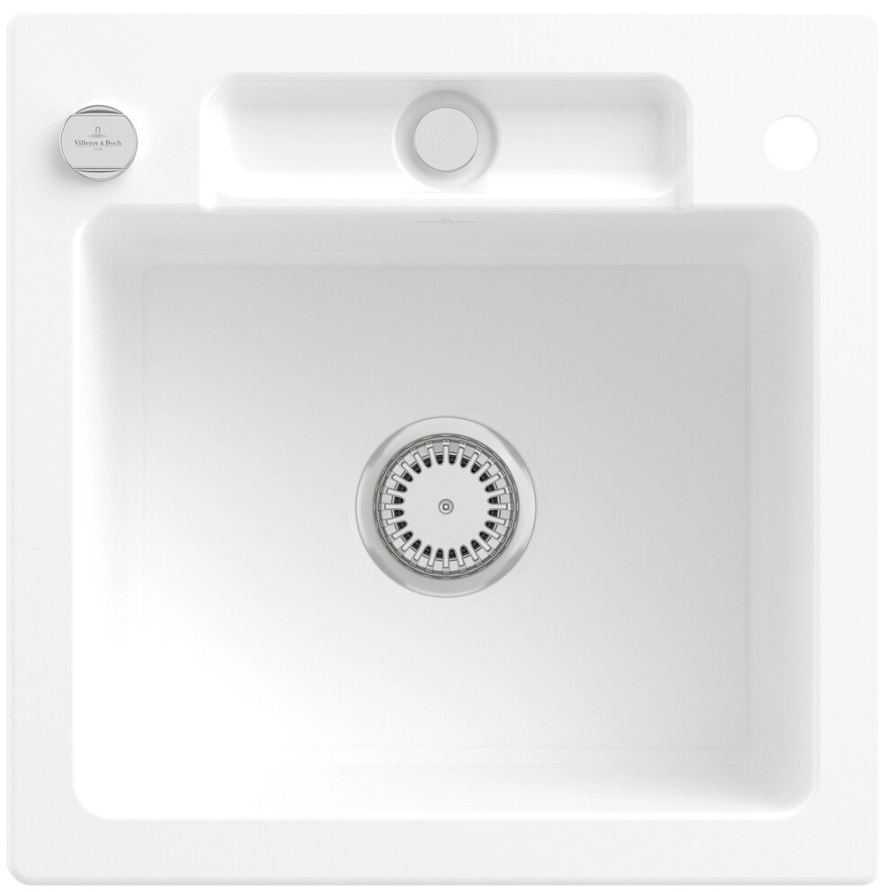 inklusive Ablaufgarnitur mit Excenterbetätigung, aus TitanCeram, 510 x 510 mm, Stone White, CeramicPlus