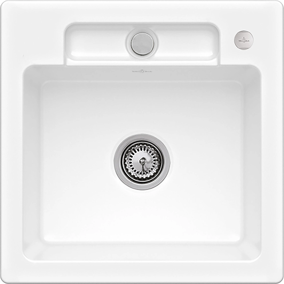 inklusive Ablaufgarnitur mit Excenterbetätigung, aus TitanCeram, 470 x 470 mm, Weiß Alpin, CeramicPlus