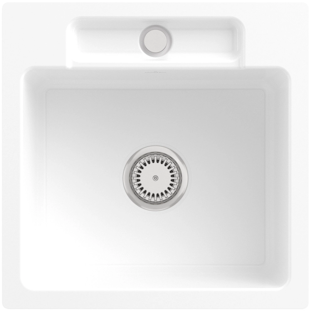 inklusive Ablaufgarnitur mit Handbetätigung, aus TitanCeram, 600 x 510 mm, Weiß Alpin, CeramicPlus