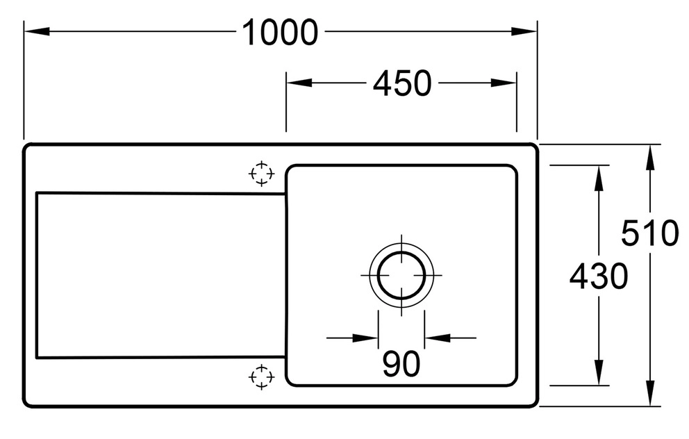 inklusive Ablaufgarnitur mit Excenterbetätigung, aus Keramik, 1000 x 510 mm, Fossil