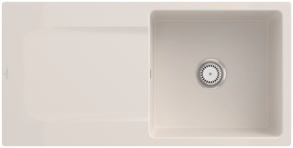 inklusive Ablaufgarnitur mit Handbetätigung, aus Keramik, 980 x 490 mm, Crema, CeramicPlus