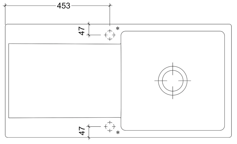 durchgebohrt werden soll. Artikelnummer Hahnloch = 69999999.