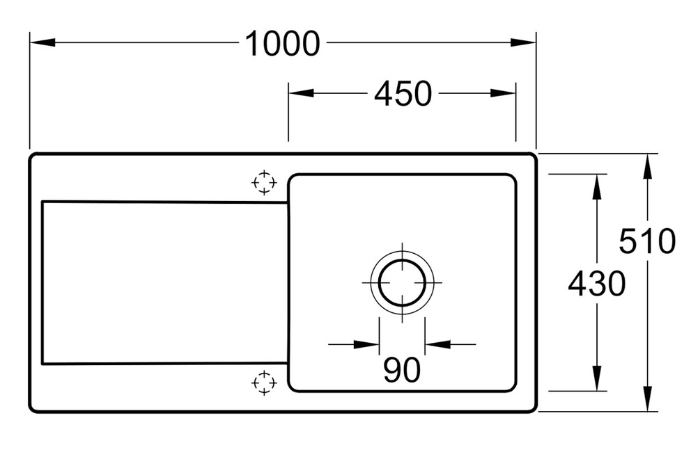 Ausschnitt Arbeitsplatte: 97 x 48 cm.