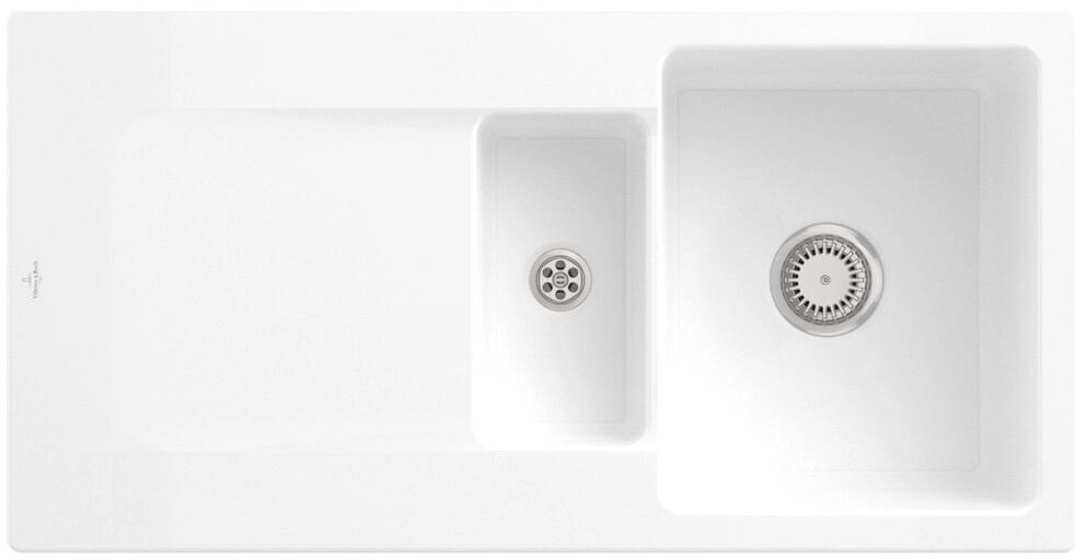 inklusive Ablaufgarnitur mit Handbetätigung, aus TitanCeram, 1000 x 510 mm, Weiß Alpin, CeramicPlus