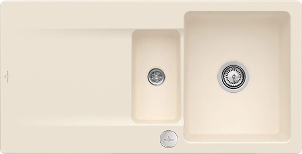 inklusive Ablaufgarnitur mit Excenterbetätigung, aus Keramik, 980 x 490 mm, Ivory, CeramicPlus
