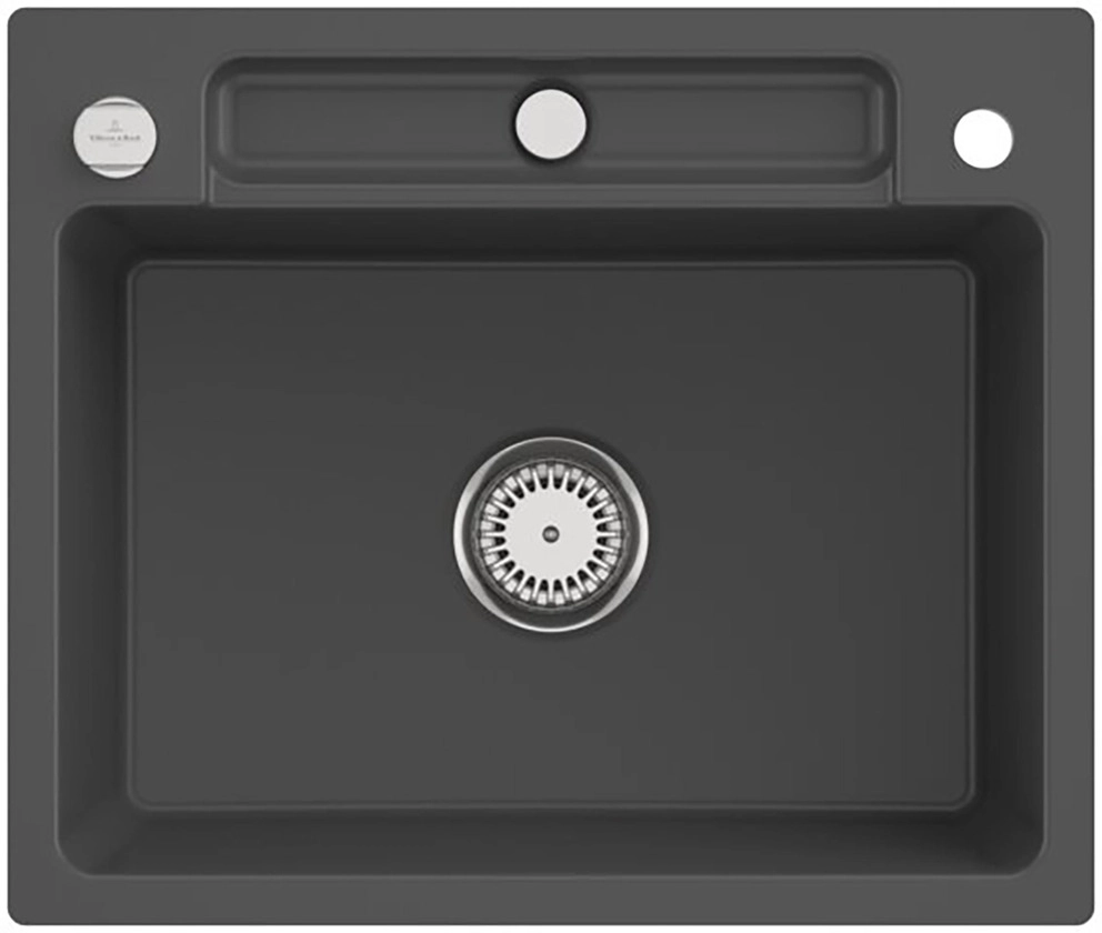 inklusive Ablaufgarnitur mit Excenterbetätigung, aus TitanCeram, 600 x 510 mm, Graphite, CeramicPlus