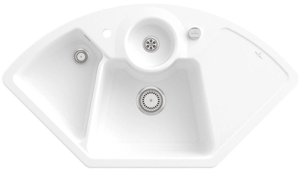 inklusive Ablaufgarnitur mit Excenterbetätigung, Resteschale, aus Keramik, 1075 x 600 mm, Stone White