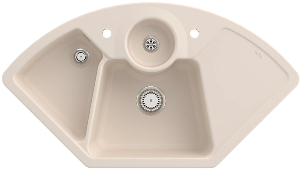 Eckspüle in CeramicPlus-Qualität komplett mit verschließbarem Zusatzbecken,