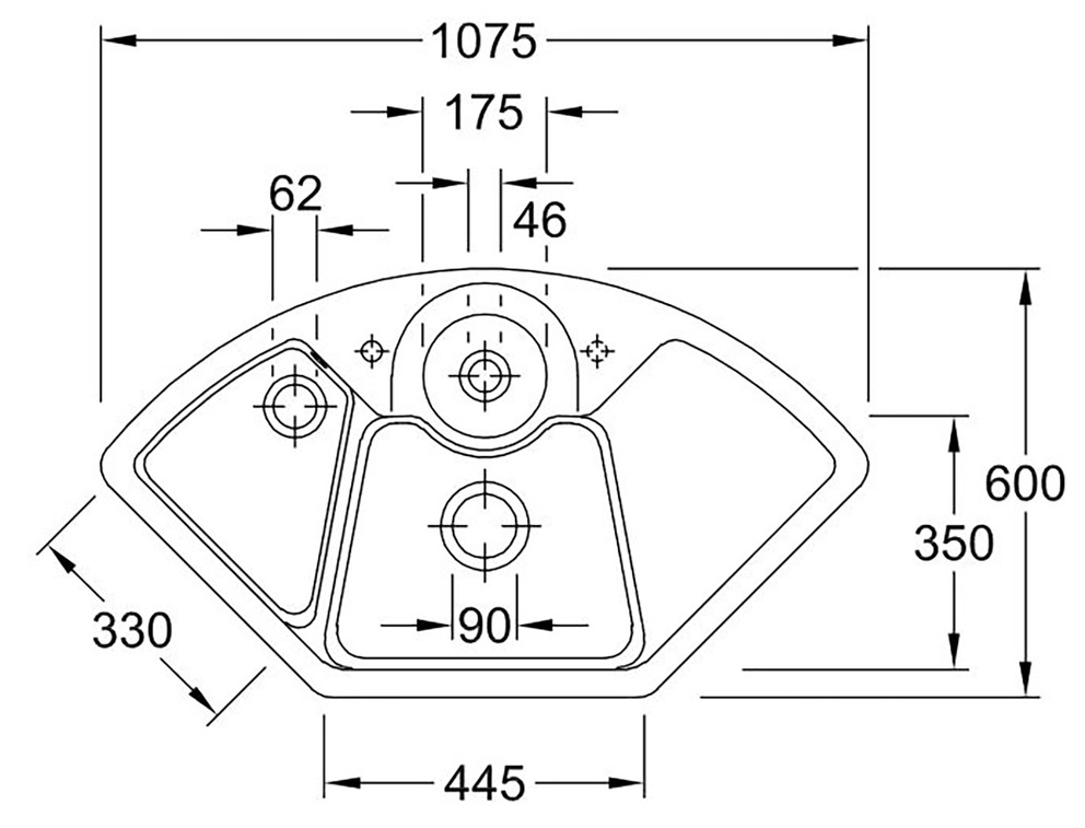 Für Eckspülenunterschrank mit Schenkelmaß 90 cm.