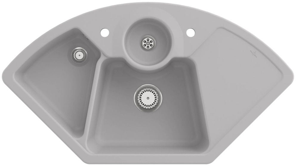 Eckspüle in CeramicPlus-Qualität komplett mit verschließbarem Zusatzbecken,