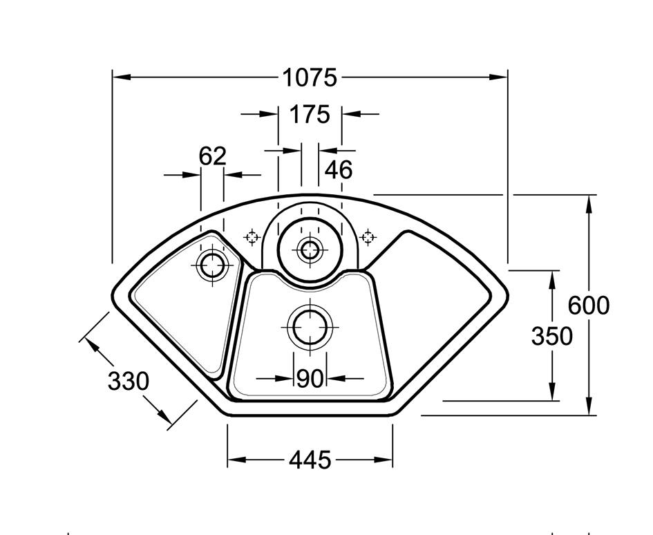 Für Eckspülen-Unterschrank mit Schenkelmaß 90 cm.