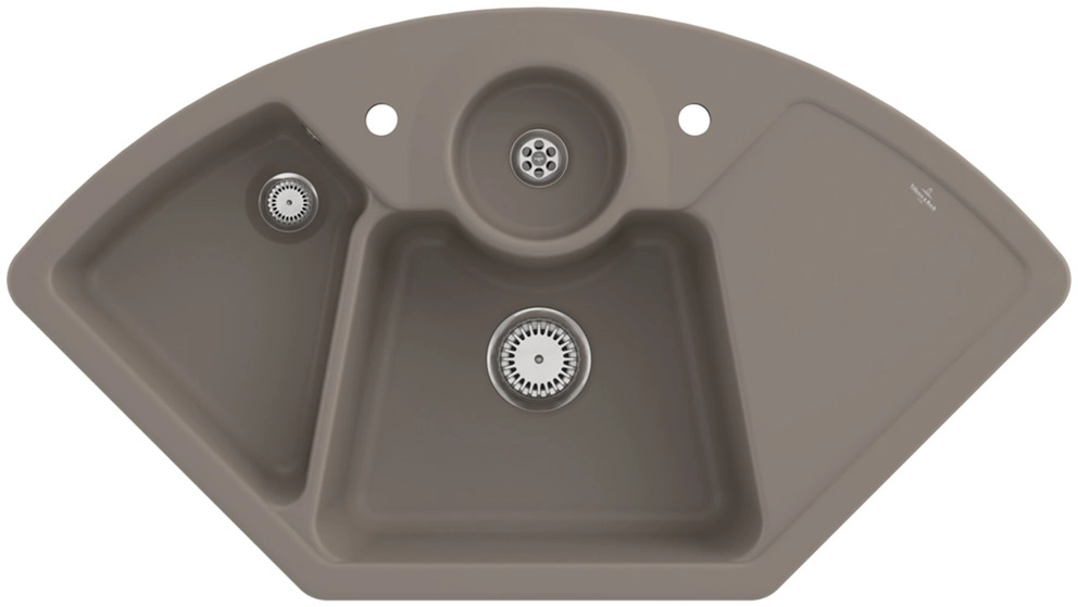 Eckspüle in CeramicPlus-Qualität komplett mit verschließbarem Zusatzbecken,