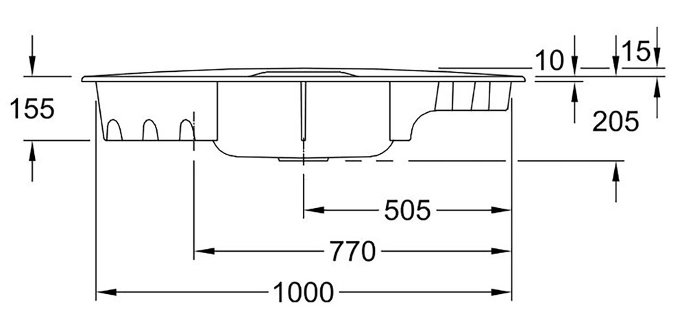 Aussparung der Arbeitsplatte gemäß mitgelieferter Montageschablone.
